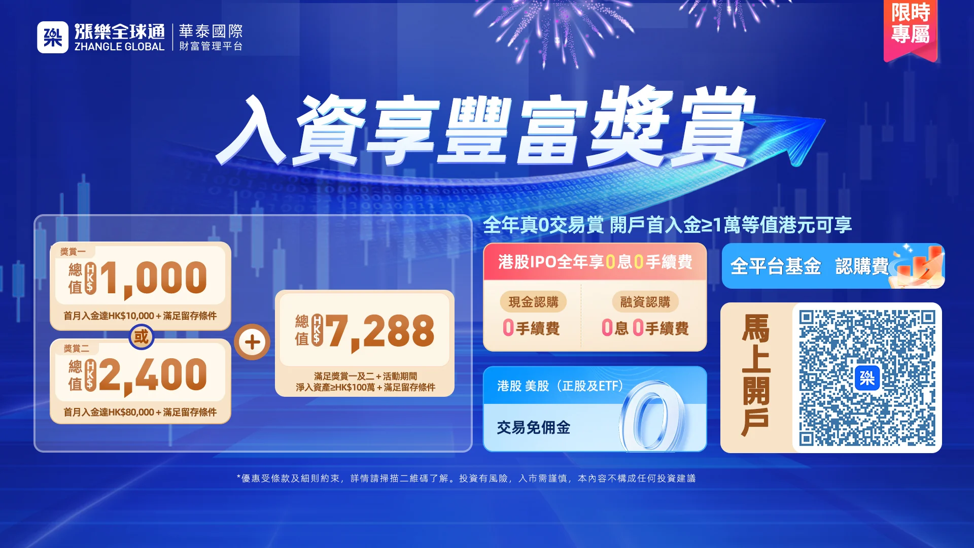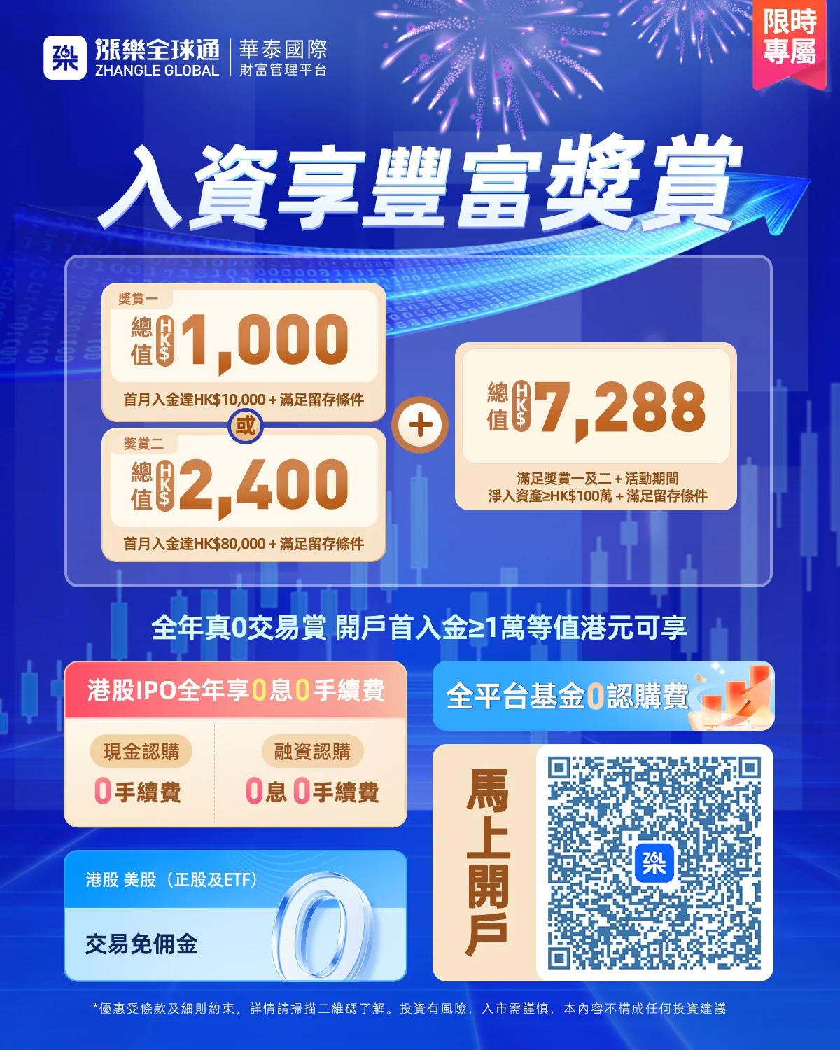 限時優惠!2026年3月1日至3月31日期間,新客戶經HongKongCard成功 開立華泰漲樂全球通,完成以下條件可享高達HK$2,400獎賞 (合資格後,由華泰直接派發):